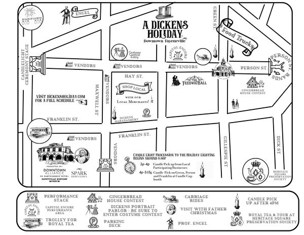 A Dickens Holiday is a festive event celebrating the holiday season with activities inspired by the Victorian era and the works of Charles Dickens. It features shopping, entertainment, food, and various family-friendly activities throughout downtown Fayetteville. This year, we are celebrating our 25th anniversary!